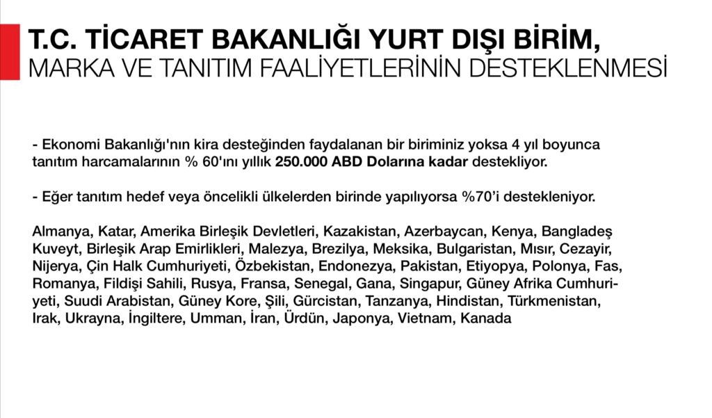 - Bursa’da Ticaret Bakanlığı Yurtdışı pazarlama teşviki ile ihracatınızı yeni ülkelere kaydırın.